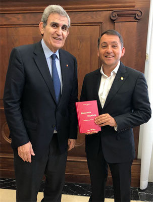 El Excmo. Sr. D. José Manuel Bermúdez Esparza, Alcalde del Ayuntamiento de Santa Cruz de Tenerife, recibió el día 27 al Comendador Emérito Jesús Soriano, 33º y este le obsequió un libro, de excepcional calidad, sobre la historia de la masonería española.