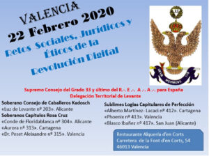 EL día 22 de Febrero se ha celebrado el Convento de Levante, organizado por la Delegación Territorial de Levante del Supremo Consejo del Grado 33 y último del Rito Escocés Antiguo y Aceptado para España. Los HH.·. de los Cuerpos Jurisdiccionados de Valencia colaboraron generosamente en el desarrollo del evento.