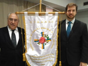 Un distinguido representante del Occidente (Galicia) y otro del Oriente (País Vasco) apoyan el estandarte del S.·.C.·.R.·.C.·. “Agustín Argüelles” Nº 320