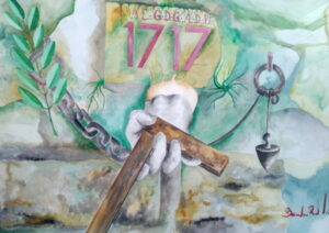Acuarela realizada por el M.·.S.·. Bernardino Rozada Fernández, 4º con motivo del 300 aniversario masónico celebrado el 24 de junio de 2017.