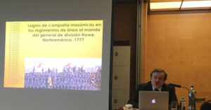 El M. E. de los N. Narciso Ortega, 9º en un momento de su conferencia “Militares y Masonería”