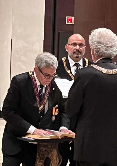 El Muy Ilustre y Poderoso Soberano Gran Comendador de Portugal, Manuel Alves de Almeida, 33º, como Comendador Instalador, ofició la ceremonia de investidura de nuestro Soberano Gran Comendador electo por unanimidad, en la Asamblea General del Grado 33 del R.·. E.·. A.·. A.·. para España del día 15 de Octubre pasado en Madrid, el Muy Ilustre y Poderoso Hermano Jesús Soriano Carrillo 33º. Seguidamente el Soberano Gran Comendador tomó juramento e instaló al resto de los Dignatarios y Oficiales, todos los cuales también fueron votados afirmativamente por unanimidad en la Asamblea mencionada.